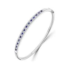 Stunning bangle featuring a royal blue sapphire flanked by pave diamonds.
